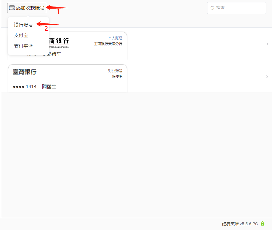 进入『共享』页面,点击『添加共享收款账号』,选择银行账号或者支付平台
